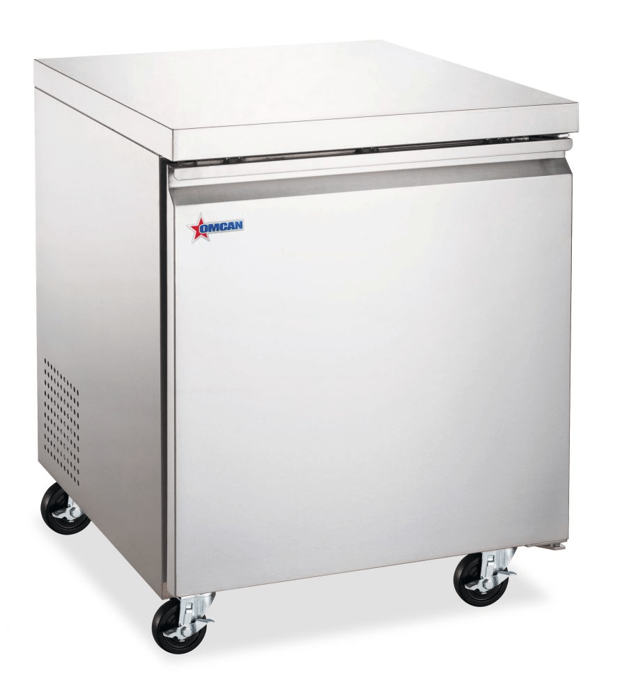 Omcan's RE-CN-0006-HC is a commercial-quality undercounter refrigerator with a width of 27 inches and a storage capacity of 6.3 cubic feet. It features a self-closing door with 90° stay-open feature. The cabinet has 1 heavy-duty, adjustable, PVC-coated shelf. Undercounter models like this are perfect for quick access without taking up eye-level countertop space.