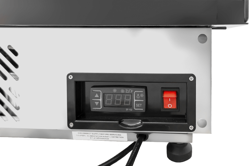 This product has an environmentally-friendly R290 refrigerant, a 2/7 HP compressor, and 6.9 cubic feet (198 litres) of storage. The case's body is stainless steel and its temperature range is 0° to 12° Celsius (32° to 53.6° Fahrenheit). It comes with a 1-year parts and labour warranty.
