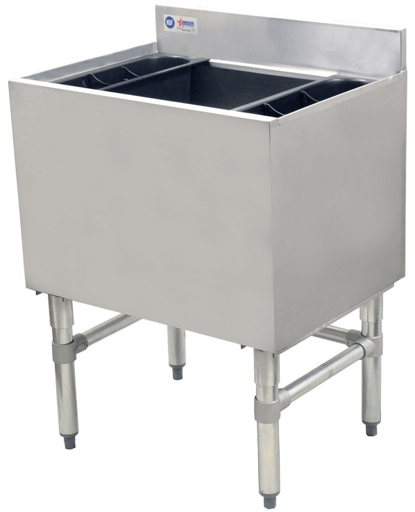 The Omcan underbar ice bin has been made of sturdy and rugged stainless steel and galvanized metal. It has a 3" high backsplash.