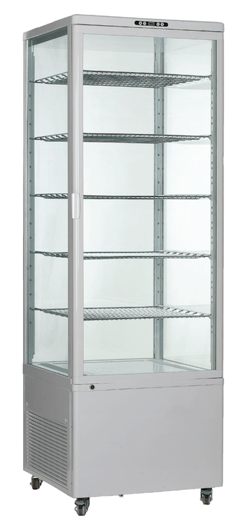 The Omcan RS-CN-5000 is a 25.5" floor model self service refrigerated display case with seventeen cubic feet.