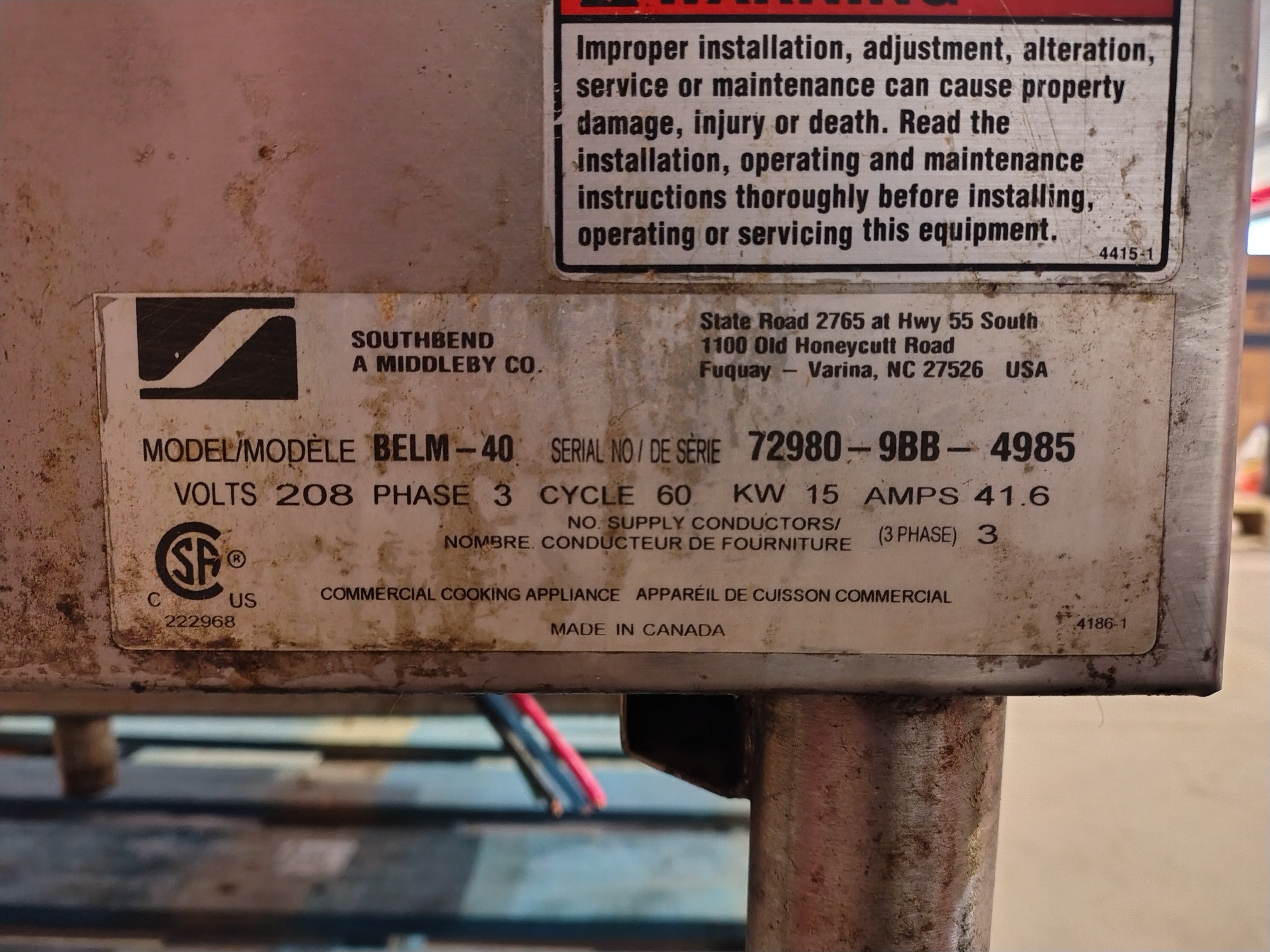 - Narrow footprint: 36" (914mm) for model BELM-30, 48" (1219mm) for model BELM-40