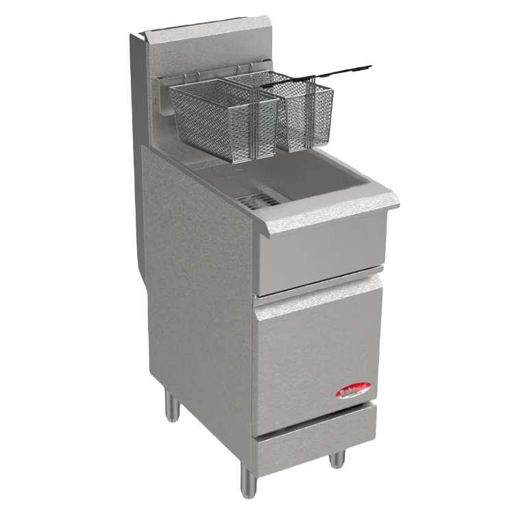 The BakeMax America BAKE Series Fryers are made of heavy-duty stainless steel with a double layer access door. Galvanized steel side panels. The drain valve is 1.5” diameter to allow for quick draining.