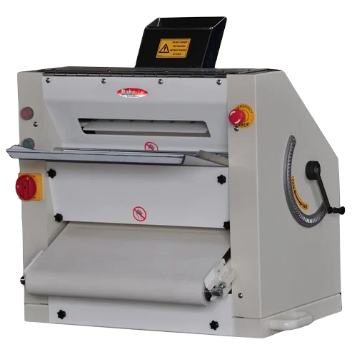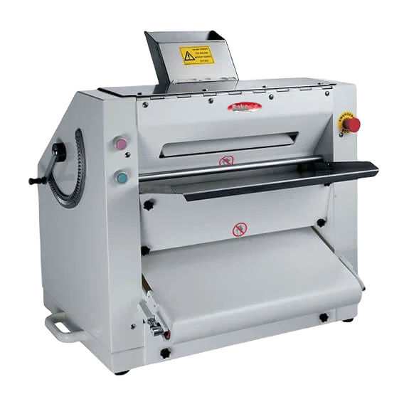The BakeMax BMPS001 Heavy Duty Countertop Two Pass 20” Wide Dough Sheeter is an efficient two stage machine featuring a front infeed and discharge. Ergonomic design makes it easy and simple to operate. Its powerful 1.5HP motor can sheet up to 600 pieces/hr. and is great for Pizza, Dessert Pie Crusts, Pasta, Focaccia, Roti, Calzones, Flour Tortillas and Pita Bread.