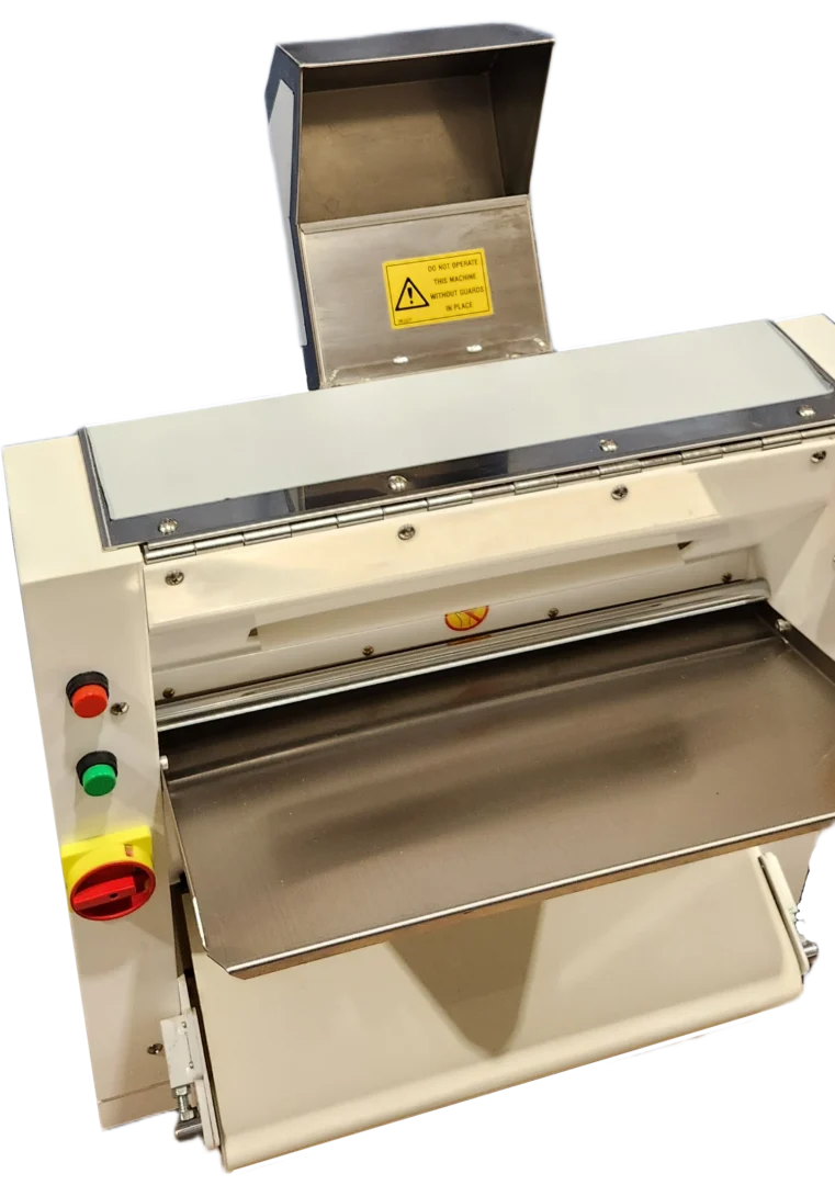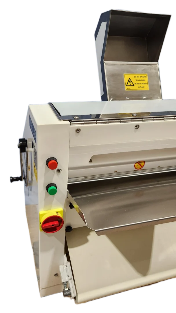 - Top Cover has a Safety Power Shut-Off Switch when Opened, it opens to provide easy access to non-stick rollers for clearing of dough and for easy cleaning