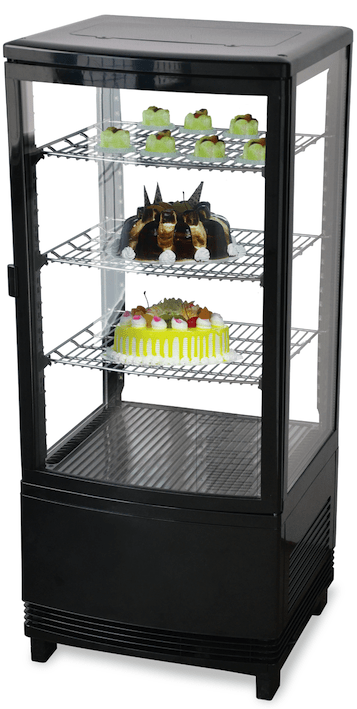 The Omcan RS-CN-0078-D is a countertop dual service refrigerated display case with 2.75 cubic feet of storage.