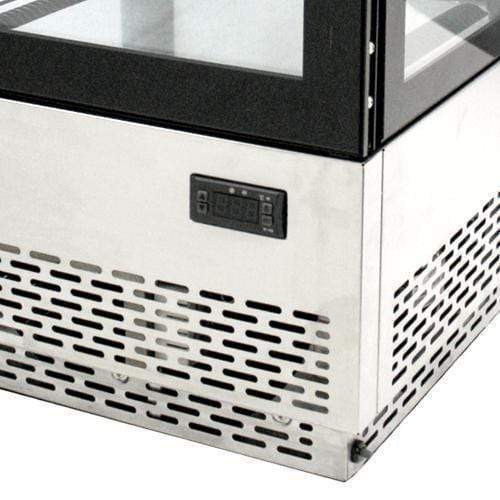 The Omcan RS-CN-0078 is a 16.9-inch wide countertop full service refrigerated display case with 2.75 cubic feet of storage.