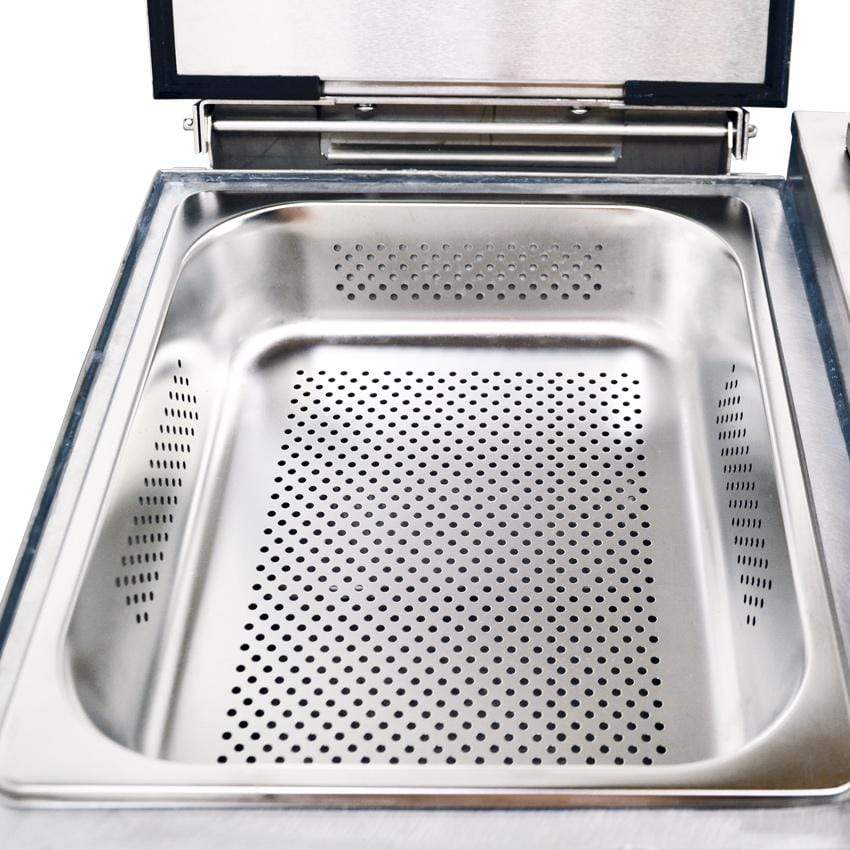 The Omcan FW-CN-1800 is a countertop electric steamer with stainless steel construction and a half-pan capacity. The water tank has a capacity of 2.8 litres (3 quarts) and the pre-heating time is 25 minutes. This steamer has push button control and the steam temperature can go up to 212° Fahrenheit (100° Celsius). Reheat your foods with a burst of super hot steam. This steamer is made for your kitchen, concession stands, and wherever steaming is needed.