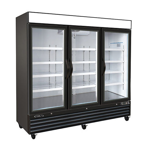 - 3 swinging, triple-pane, locking, self-closing glass doors