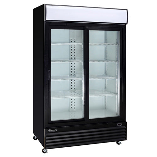 - 2 double-pane locking self-closing glass doors