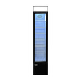 Spacious glass door refrigerator crafted with enduring quality. Sleek design featuring innovative technology, high-efficiency components, and the most attractive product display in its category. Slim size refrigerated display glass door merchandiser, ideal for promotions or impulse new products. Designed for places with limited space.