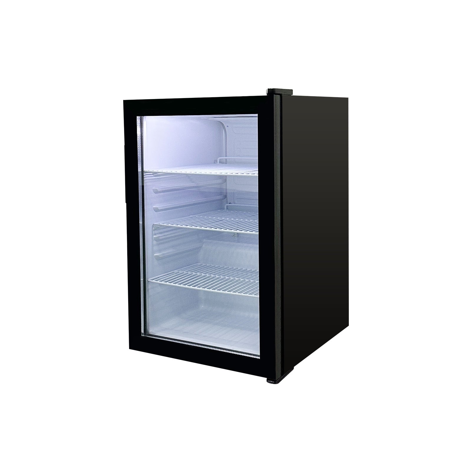 Sleek Design - This unit features a sturdy frame crafted from black-painted steel, designed to complement any environment. Its clear glass door provides full visibility of the contents while maintaining a tight seal to conserve energy and keep cold air inside.