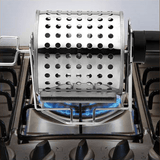 - The cylindrical container, made of AISI 430 stainless steel, is supported by a chrome-plated steel frame and can be placed on the stove