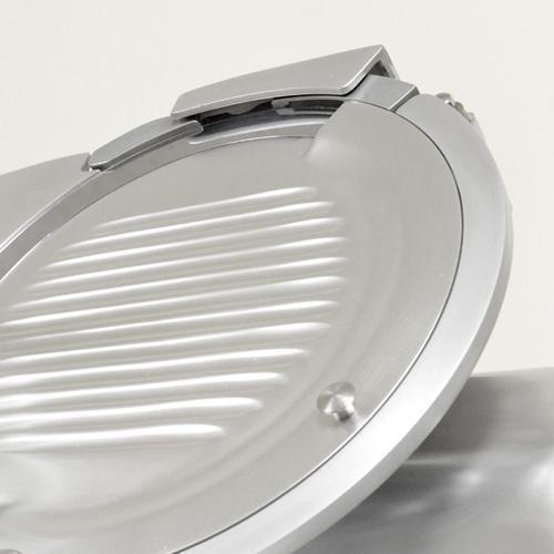 - Removable parts for cleaning: blade cover, product-holder plate, aluminum meat grip, stainless steel slice deflector